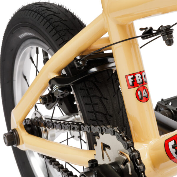 For 2026 we’ve lightened up the 14” frame and fork and increased the crank length from 95mm to 105mm. Making our MISFIT bikes properly proportioned for young riders has been a goal of ours for years and although they’re not obvious at first glance, little details like the crank length and 23/9 gear ratio make a big difference for riders. Small diameter handle grips and a short reach brake lever help keep young riders in control. Low tension U-brake springs and a linear brake cable make slowing down easier while a longer 200mm seat post for 2026 allows for more adjustability. We have also switched from 19mm rear axle nuts to 17mm to allow riders to use smaller diameter pegs. A lot of small details making for one big improvement.