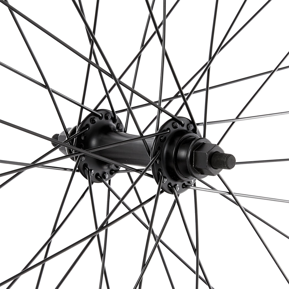 Featuring fully sealed male hubs front and rear laced to light and strong FIT Double Wall OEM rims. Sealed cassette with R.H.D. 9T driver.