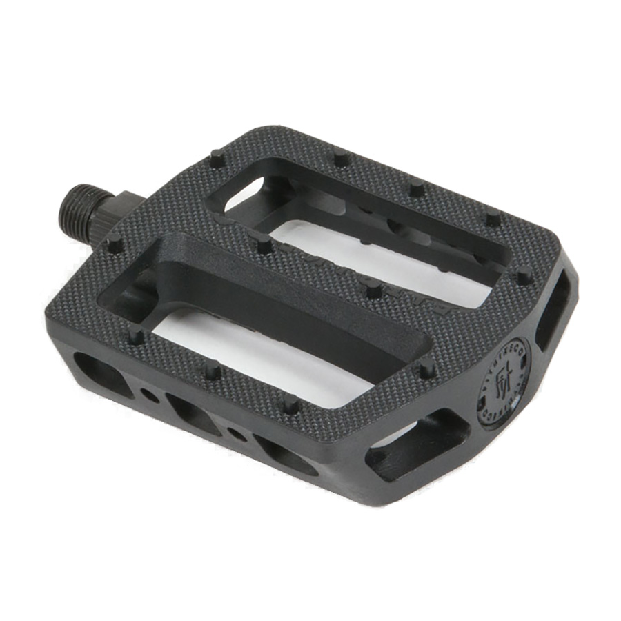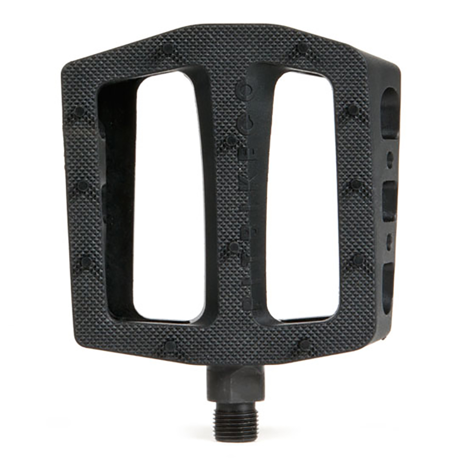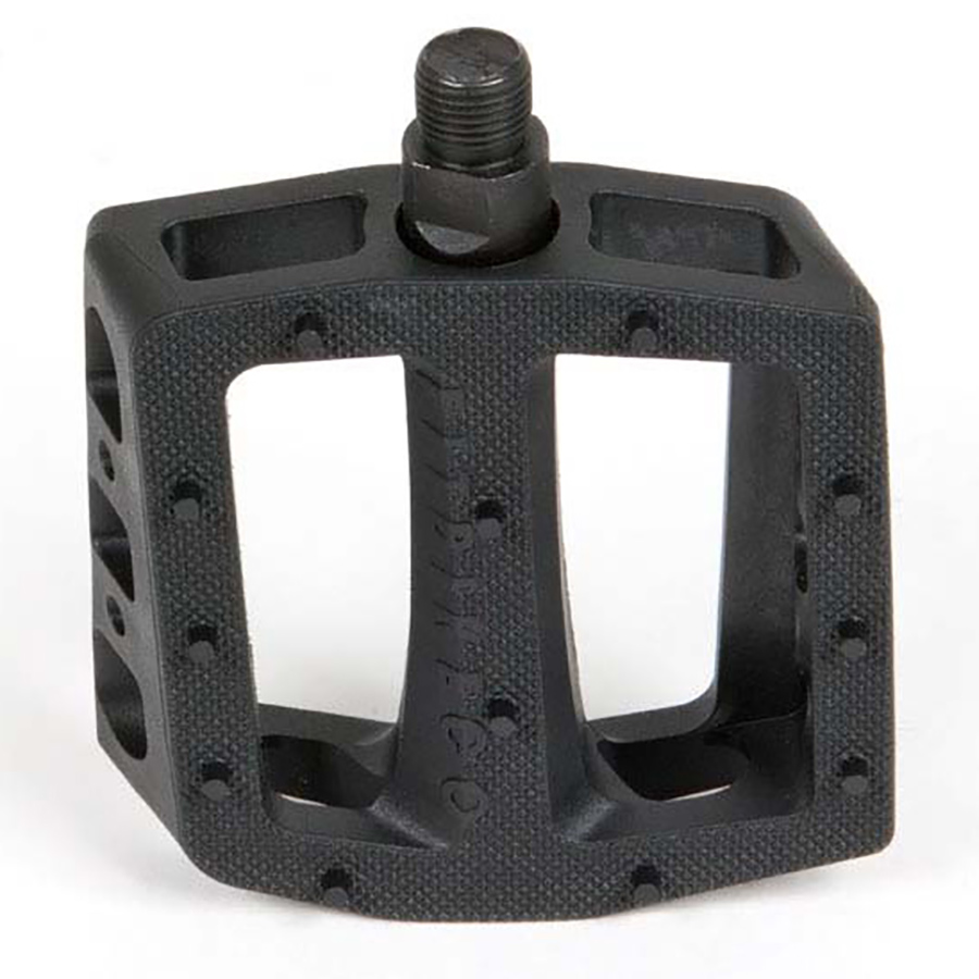 Nylon version of our popular TRAIL pedal. Oversized CrMo spindle for strength. The ergonomic shape is designed to grip your foot better than traditional pedal shapes. Micro-knurled surface and molded pins for traction.