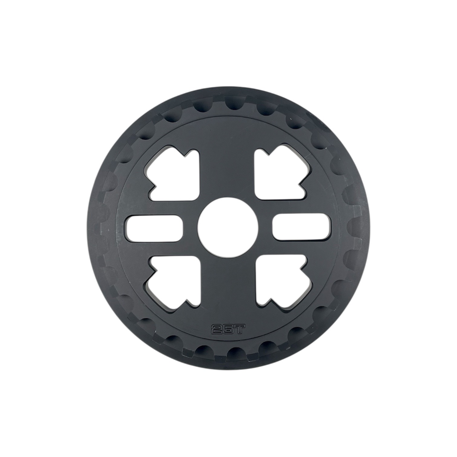 The KEY GUARD sprocket has a clean and classic design with an updated tooth profile for better chain engagement and longer tooth life. Two mounting positions extend grind life. Offset teeth for better chain alignment. MADE IN USA