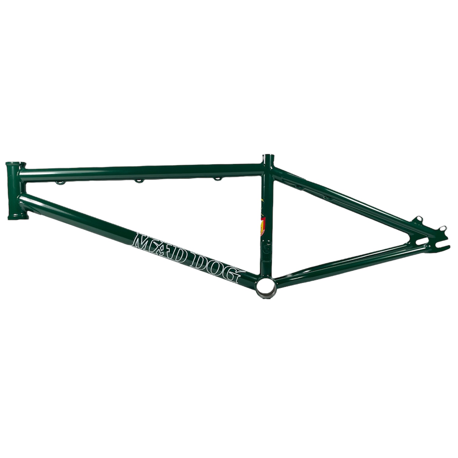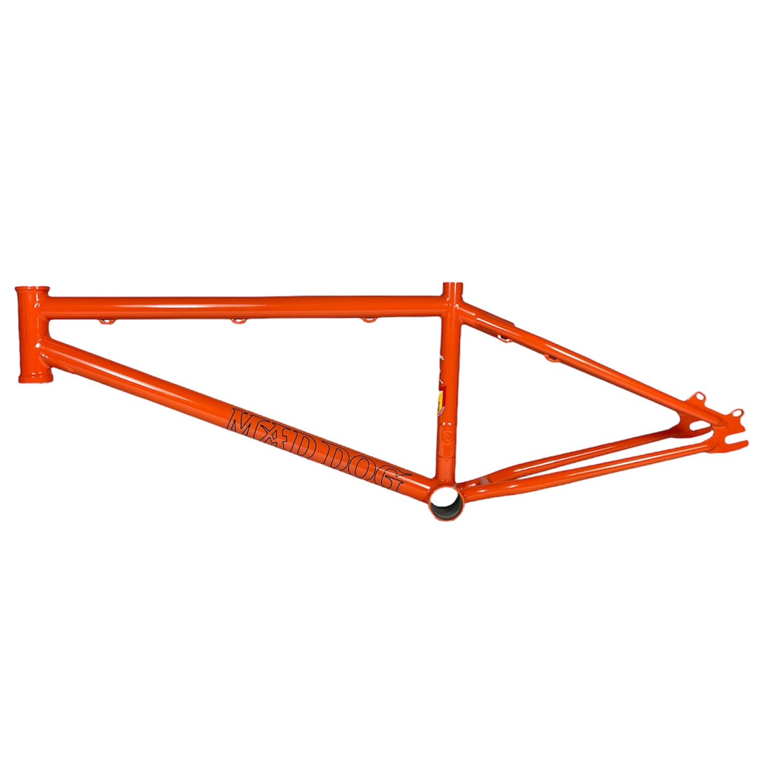 Engraved Shield on Headtube. Engraved ’87’ on BB shell. MAD DOG-tag on seat-tube.