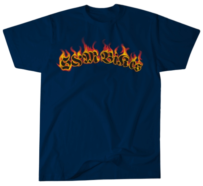 Can’t stop the re-pop! Aryei Levenson is a new school S&M rider with some mid school style. From his frame design to his riding style, he’s always drawing from the past to help shape the future. His choice in mid-school S&M Tee’s is a heavy weight seamless sided old-school style blank with a 90’s re-pop design. In this case it’s the Old Flames design from (insert date here).