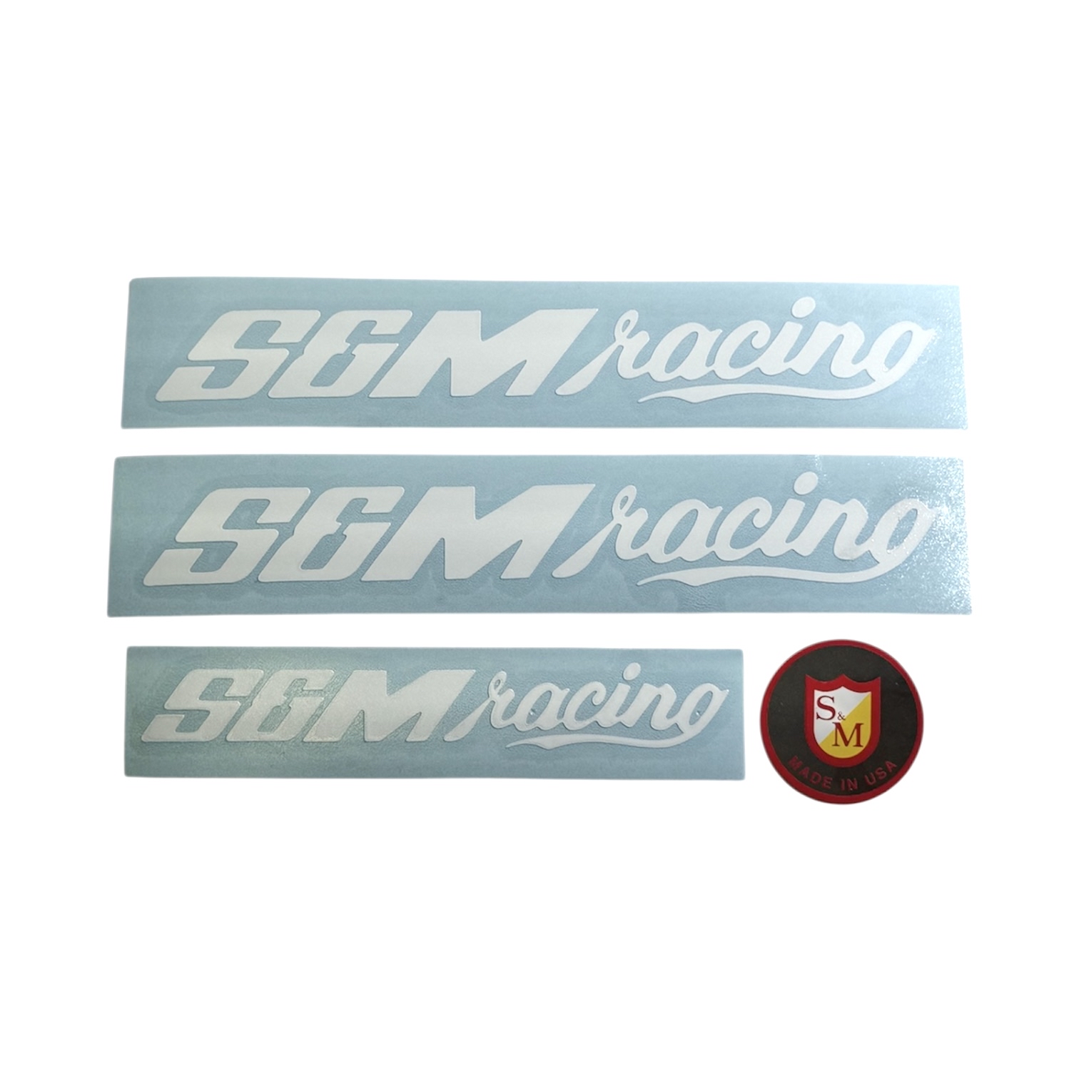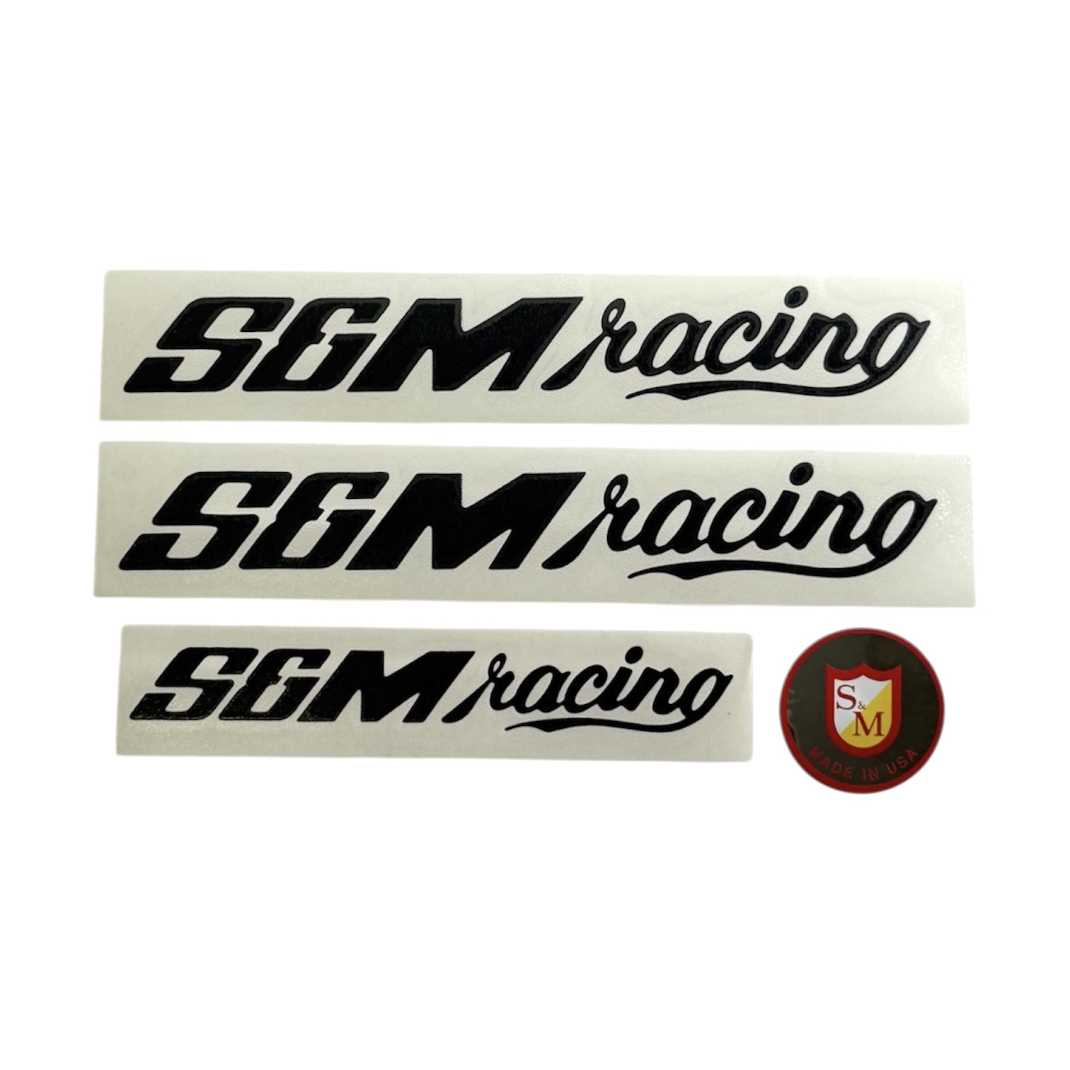 Need some new S&M race fork or bar stickers? We got you! Just like the parts these go on – they are MADE IN USA. Five piece pack avail in black or white. Two fork stickers and one bar die cut and one bar chrome round sticker.